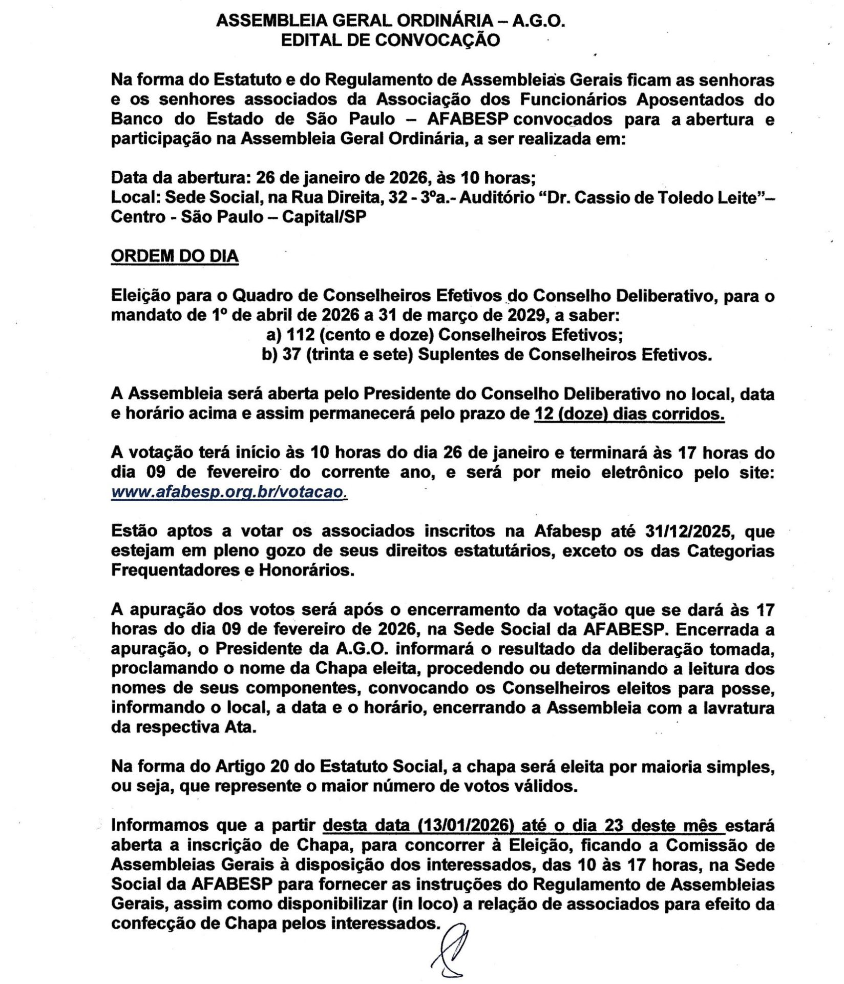 ASSEMBLEIA GERAL ORDINÁRIA - A.G.O. EDITAL DE CONVOCAÇÃO