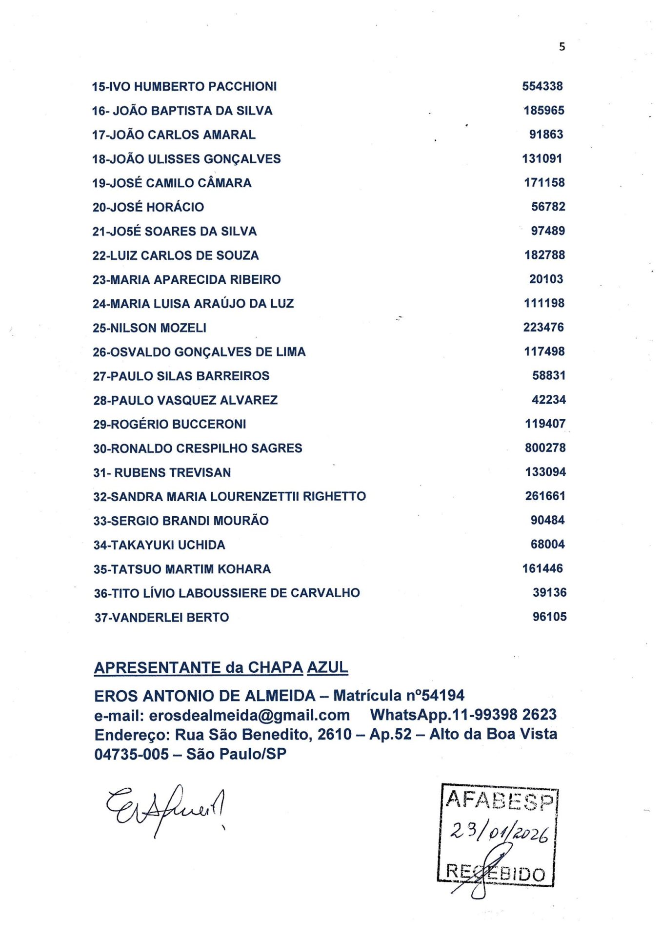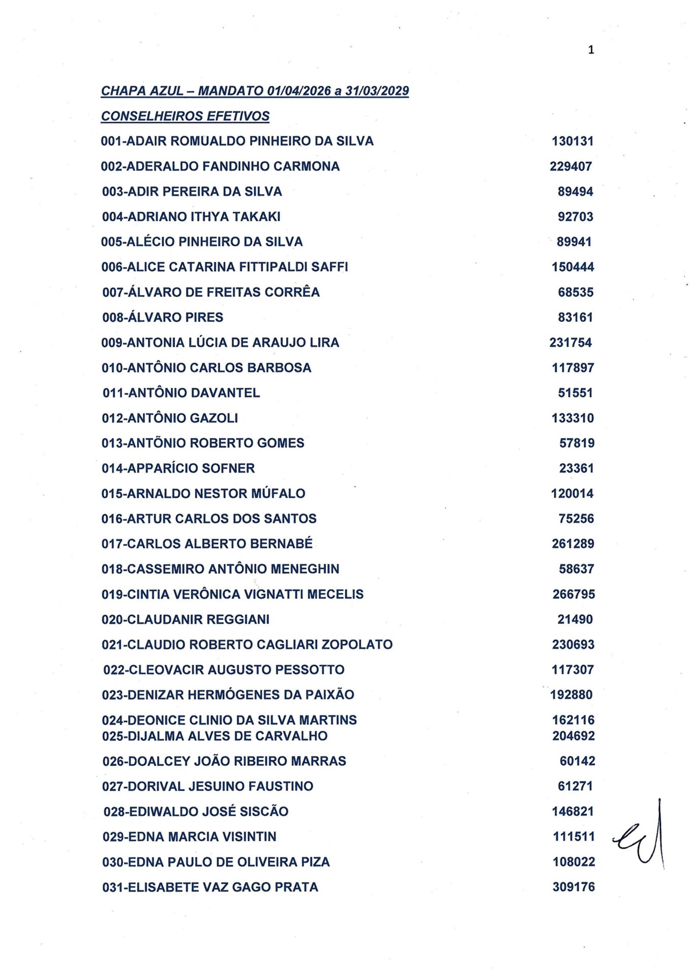 CHAPA AZUL – MANDATO 01/04/2026 a 31/03/2029